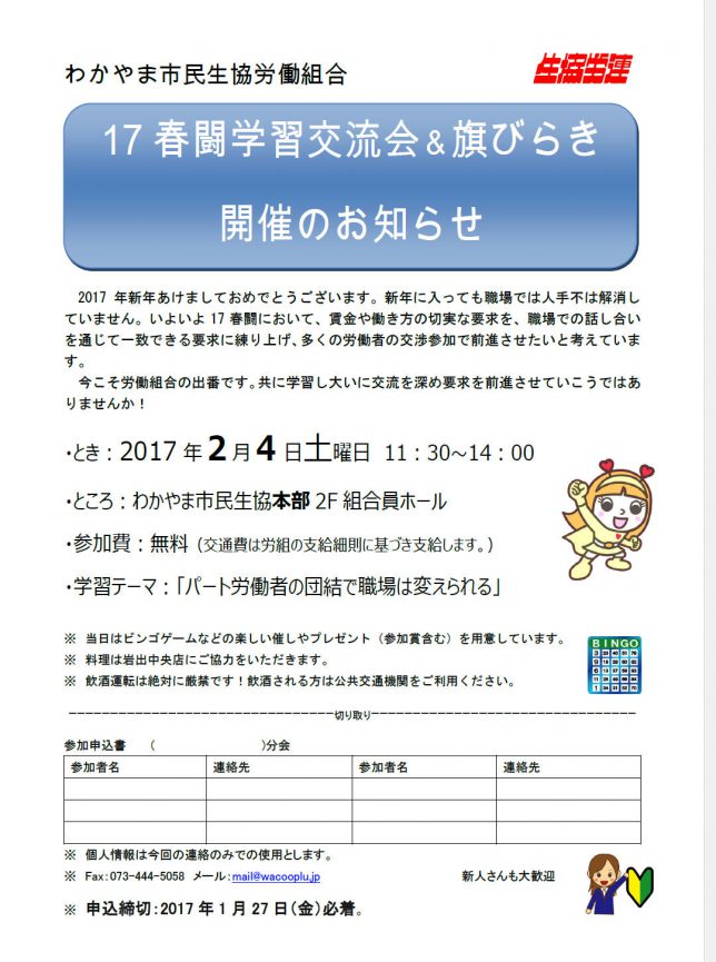 わかやま市民生協労働組合第32回定期大会のお知らせ 来る2018年8月24日(金 ...