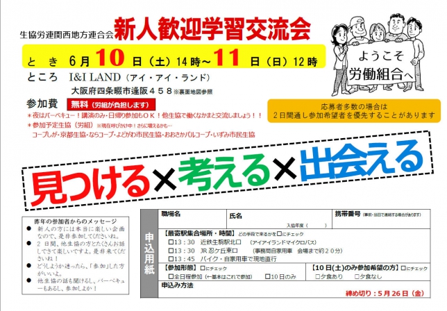 参加希望者には申し込み用紙を渡します。労働組合書記局まで電話・メール・FAXにてお早めにご連絡を。