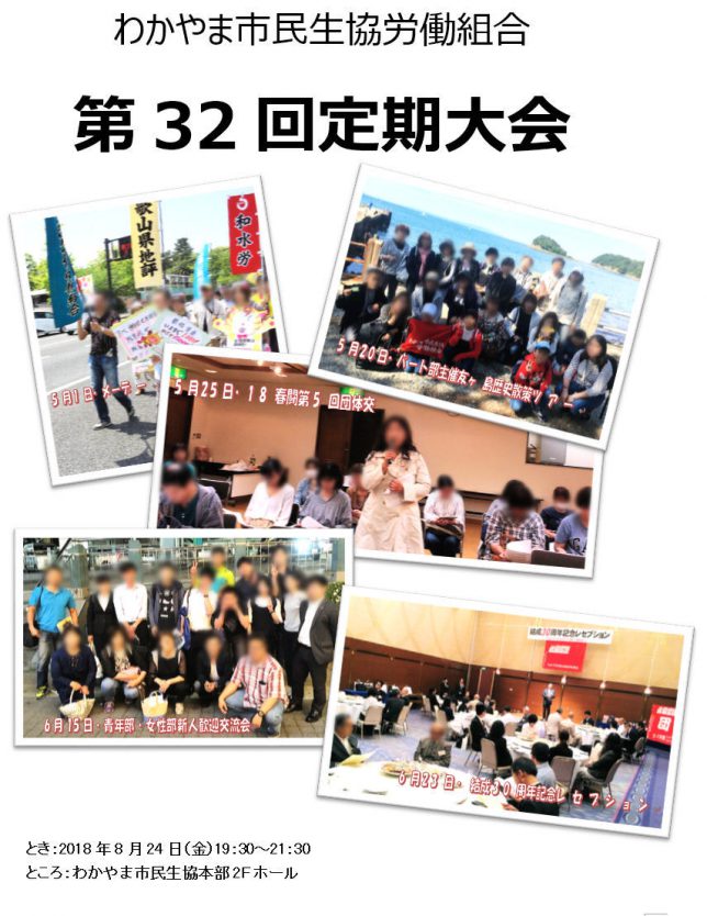 来る2018年8月24日(金)、わかやま市民生協労働組合の第32回定期大会を開催致します。